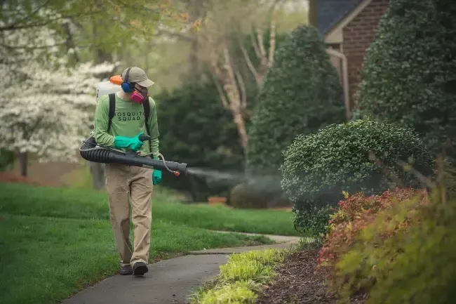 Mosquito Squad's technicians are trained to avoid treating flowering plants during applications to safeguard pollinators. They assess yards for pollinator foraging areas and apply products in accordance with state and federal laws regarding pollinator health.